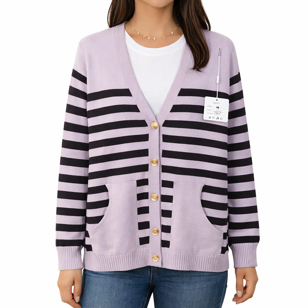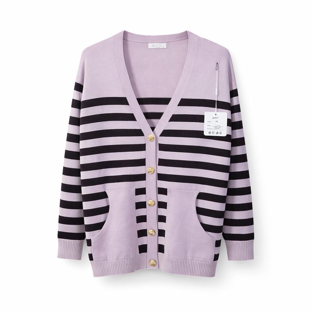 • Détails : Ce cardigan combine un rose poudré sophistiqué avec des rayures contrastées sombres.