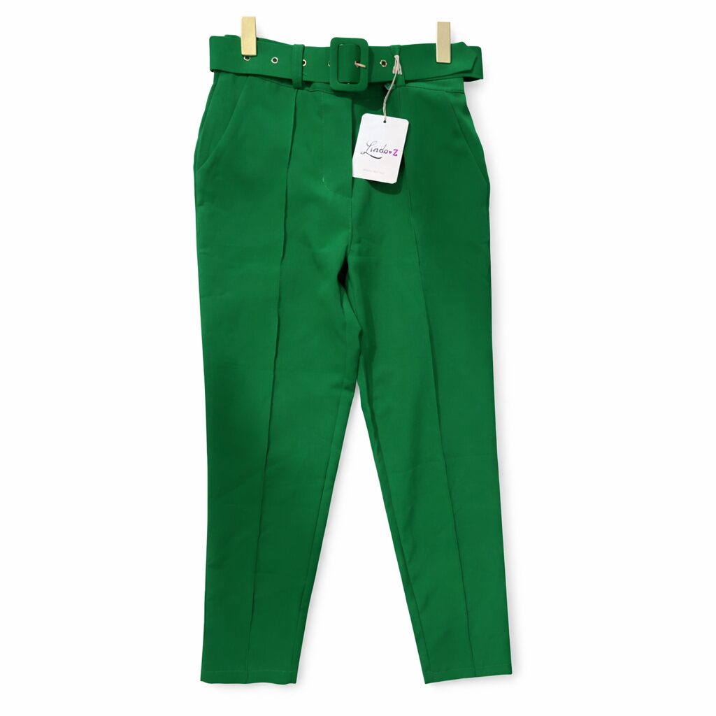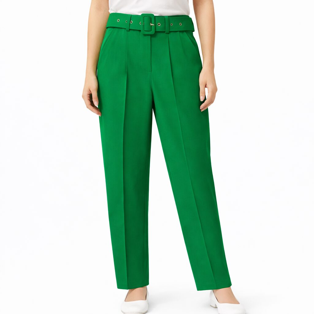 L’Éclat du Vert : Pantalon Taille Haute avec Ceinture »